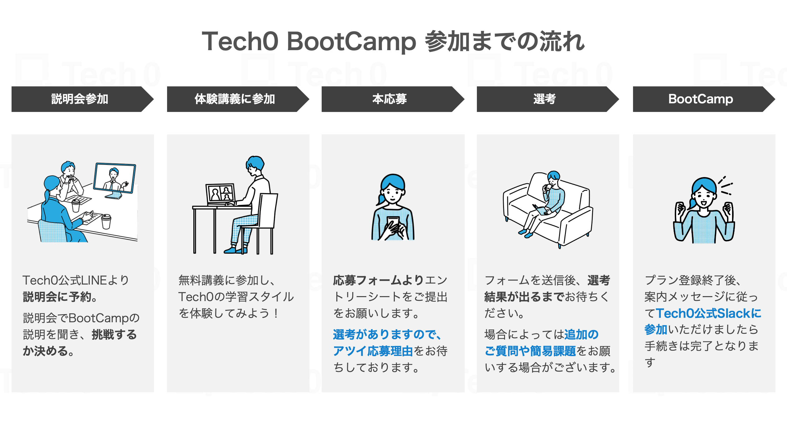 BootCampへの応募及び選考申込みの流れは、下記フローのようになります。